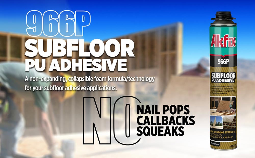 Akfix 966P ist ein einkomponentiger Klebstoff auf Polyurethanbasis der neuen Generation, der für Bodenfugen, Unterböden, Traversen, Spanplatten, Holzwerkstoffe und Decks entwickelt wurde. Der Klebstoff bietet überlegene Haftung auf Holz, Sperrholz, Beton, Metallen, Mauerwerk und vielen anderen Substraten, auch wenn sie gefroren oder leicht feucht sind.
